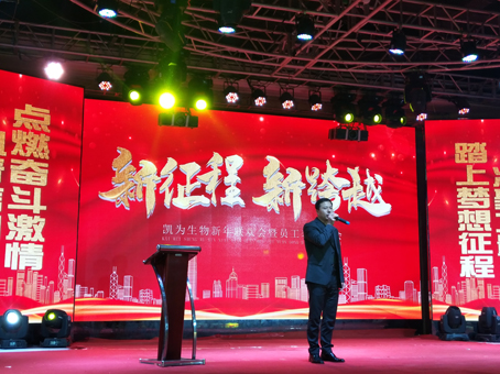 公司總裁王鐵良先生首先總結(jié)公司十余年的奮斗歷程,“從冰雪到綠原,那是冬天走向春天的路,從失敗到成功,那是披襟斬棘闖出來的路,凱為人十余載風(fēng)雨同舟,不負(fù)韶華。過去的一年是我們公司創(chuàng)新業(yè)績、重振區(qū)域品牌的一年,2019年公司不僅實(shí)現(xiàn)了銷售收入同比增長,而且公司新增養(yǎng)殖基地三個(gè),新建培訓(xùn)中心已納入養(yǎng)殖服務(wù)板塊,新建檢測(cè)中心納入客戶服務(wù)體系。實(shí)踐證明:我們一直用凱為的價(jià)值觀衡量我們的行動(dòng)向共同美好的愿景持續(xù)奮進(jìn)!正是因?yàn)槟銈兊母冻龊蛿y手奮進(jìn)才有今天的凱為。我代表公司感謝所有員工的努力和敬業(yè),同時(shí)更要感謝你們的家人,正是他們默默的支持和奉獻(xiàn),使你們能全身心的投入工作,在此,我衷心的祝愿你們健康快樂!萬事如意?。 ?br />