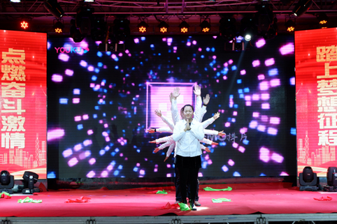 在聯(lián)歡會(huì)的現(xiàn)場(chǎng),華麗舞臺(tái)燈光璀璨,背景制作喜氣祥和,一派喜迎新春的美好盛況,那一首首悅耳動(dòng)聽的歌曲,那一段段優(yōu)美豪放的舞蹈,那一個(gè)個(gè)風(fēng)趣搞笑的互動(dòng)小品.......在舞臺(tái)上傾情巨獻(xiàn),精彩紛呈,掌聲與喝彩此起彼伏,現(xiàn)場(chǎng)氣氛熱烈、喜氣、祥和,凱為人的魅力與風(fēng)采在這一刻光芒四射,凱為人的才藝在這一刻八仙過海??!