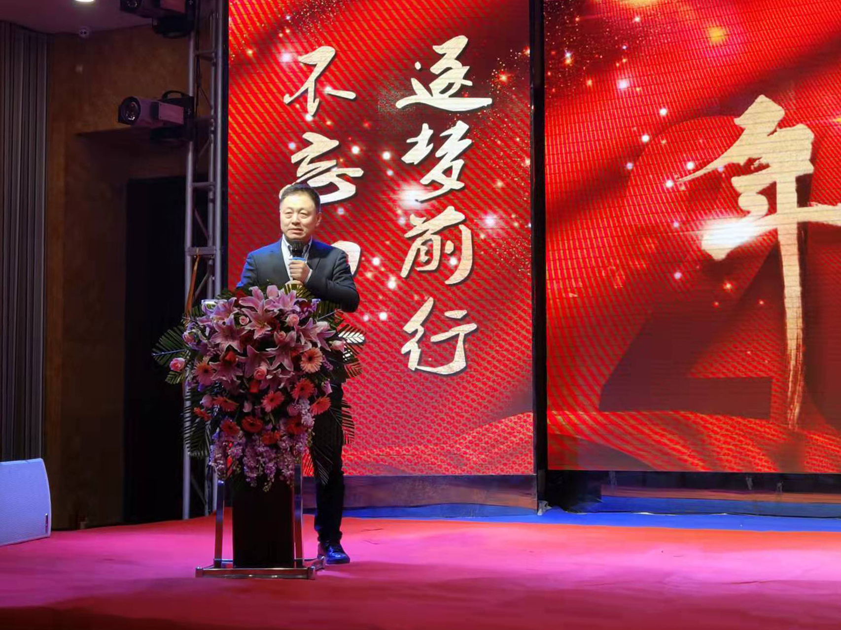 隨后公司總裁王鐵良先生上臺致2022年新年賀詞,總結(jié)了公司在2021年取得的各項傲人成績并對全體員工致以新一年的祝愿“過去的一年是凱為創(chuàng)新業(yè)績、重朔區(qū)域品牌的一年,2021年在全體員工的共同努力下,公司新版GMP車間改建已經(jīng)完成,同時四個銷售事業(yè)部網(wǎng)絡(luò)、集團(tuán)、蛋禽、電商都完成了既定目標(biāo),,同時公司養(yǎng)殖板塊安全完成了年出欄25批452萬只的目標(biāo)。技術(shù)服務(wù)中心和檢測中心已經(jīng)納入客戶服務(wù)體系,后方各管理部門能精誠團(tuán)結(jié)、通力協(xié)作,實踐證明,我們能一直用凱為的價值觀衡量我們的行動向共同美好的愿景奮進(jìn)!并祝愿大家春節(jié)快樂,平安幸福,虎虎生威、洋洋得意!”